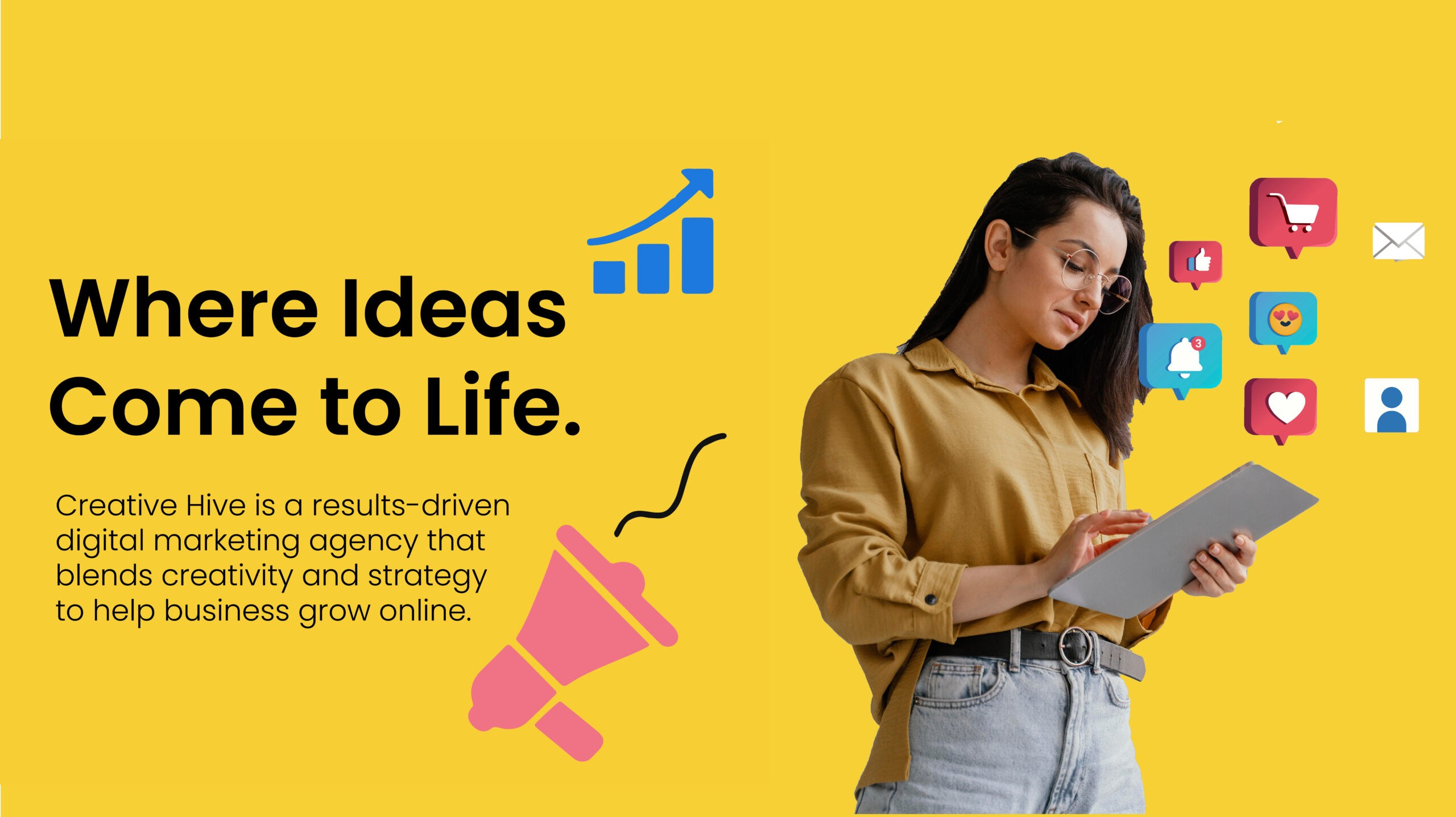 is a results-driven digital marketing agency that blends creativity and strategy to help businesses grow online. From social media marketing to website design and brand development, we deliver custom solutions that drive engagement, visibility, and real results. As a full-service marketing agency, we partner with startups, entrepreneurs, and established businesses to provide innovative, data-backed digital strategies. Our team of marketing experts, designers, and content creators work together to bring your brand vision to life. At Creative Hive, we make digital marketing simple and impactful. Whether you need to boost your online presence, increase conversions, or build a strong brand identity, we’re here to help.